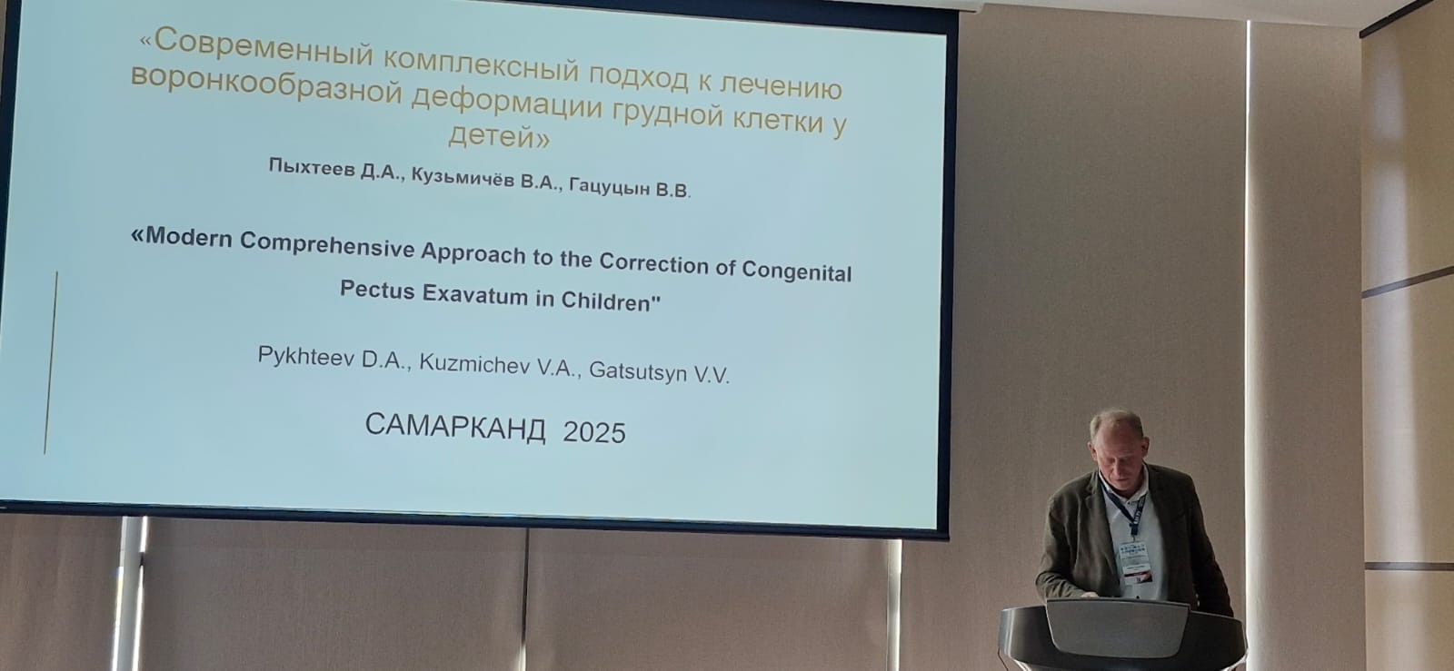 От больницы выступил Дмитрий Анатольевич Пыхтеев, врач — детский хирург, кандидат медицинских наук. Дмитрий Анатольевич принял участие в работе секции «Детская травматология и ортопедия» как модератор и докладчик. Он представил доклад «Современный комплексный подход к лечению воронкообразной деформации грудной клетки у детей». В своем выступлении рассказал, чем опасна данная деформация, какие передовые подходы используют хирурги в лечении, почему эффективна совокупная тактика и пр.