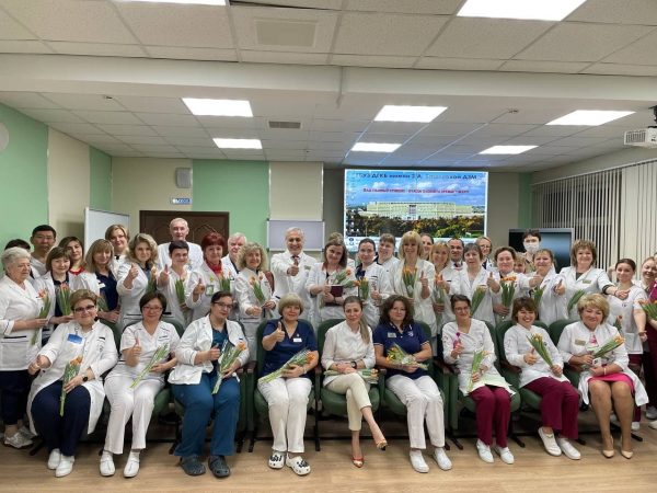 Сегодня на общебольничной конференции, после обсуждения всех производственных вопросов, мы имели честь поздравить наших дорогих сотрудниц с прекраснейшим весенним праздником 8 — марта! Желаем им счастья, любви, благополучия и прекраснейшего настроения как на работе, так и дома!