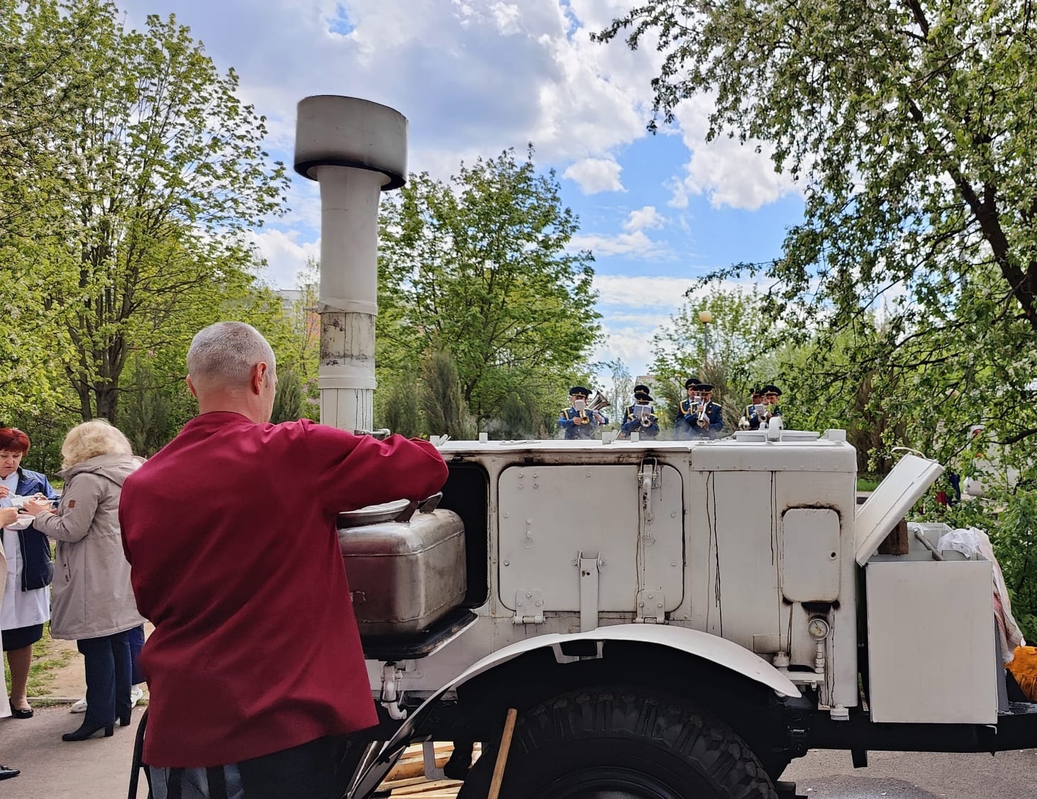 Днем состоялось торжественное возложение гвоздик на Аллее Славы, которая была высажена сотрудниками больницы ровно 10 лет назад – в честь 70-летия Великой Победы. Завершилась программа обедом на Полевой кухне с настоящей солдатской кашей и горячим чаем.